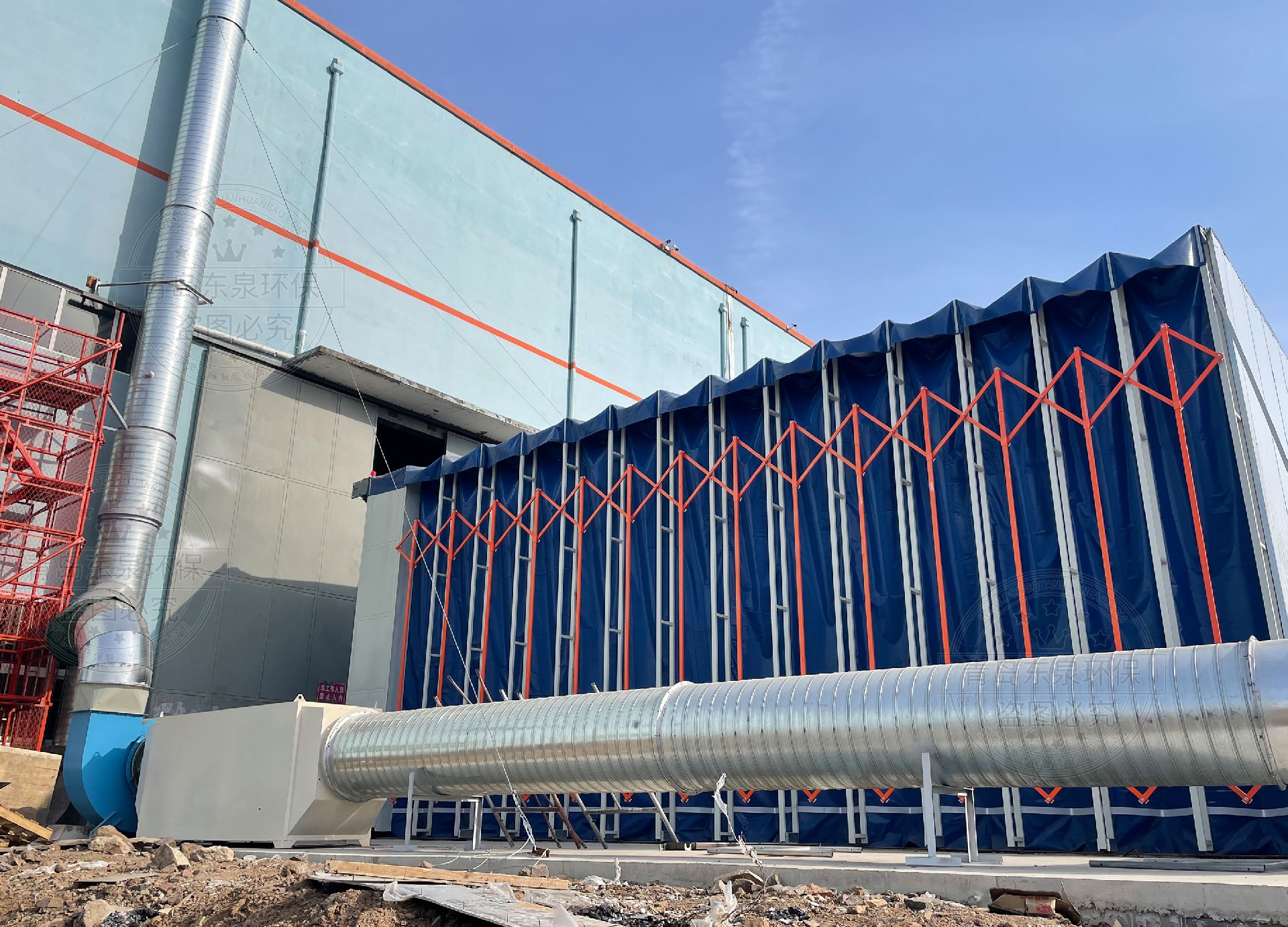 伸縮移動噴漆前室和沖擊式無泵水幕過濾器結合使用,是解決重型工件噴漆時移動難的問題,工作時將伸縮移動噴漆前室收縮,用天車將重型工件吊運到噴漆場地,再將活動前室展開,罩住工件,即可工作。噴漆后再將前室收縮,用天車將工件吊離,不影響天車的工作。
